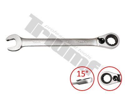 Kľúč račňový očkoplochý 13mm, mierne vyhnutý s prepínacou páčkou