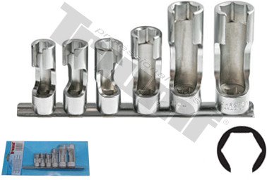 *Materiál:* CrV oceľ. Profil 6-hran otvorený. Vhodné na lambda sondy, tepelné tlakové snímače, rozvody paliva. *Sada obsahuje:* *4 ks* hlavic 6-hran 3/8” 10 - 11 - 12 - 14 mm *2 ks* hlavic 6-hran 1/2” 17 - 19 mm. - Vhodné na lambda sondy, tepelne tlakové snímače, rozvody paliva. Dodavane na kovovej koľajnici