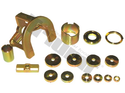 • Univerzálna sada na výmenu predného ložiska kolies kombinovaná s oporným rámom na naboje/poloosi.