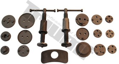 - Určená je na zatláčanie brzdových valčekov pri výmene platničiek. *Sada obsahuje:* -*2 ks* tlačnú závitnicu s pravo aj ľavotočivým závitom -*16 ks* adapterov. Dodavane v plastovom kufri.