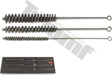 Oceľové kefky sú určené na ručné čistenie stien šiacht vstrekovačov. Priemer oceľového drôtu 0.2 mm. *Sada obsahuje rozmery:* Ø 15 x 120 mm, Ø 20 x 120 mm, Ø 9 x 100 mm *Dĺžka:* 300 mm.