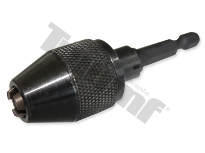 - Doplnkový adaptér pre elektrickú alebo pneumatickú vŕtačku, pre vrtaky do O 0,5 - 6,5 mm. - Vstup 1/4”.