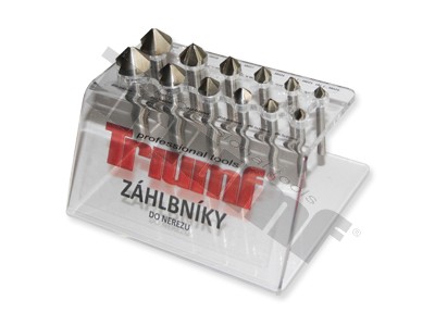 • Naplnený stojan, *12 ks* zahlbnikov určenych na zražanie ostrych hran, ktore vznikaju pri vŕtani otvorov.