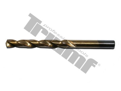 Vybrusovaný vrták z HSS ocele, povrchovo upravený titánovaním pre dlhú životnosť. Určený na vŕtanie plechov a oceľového materiálu. Uhol hrotu 135°.